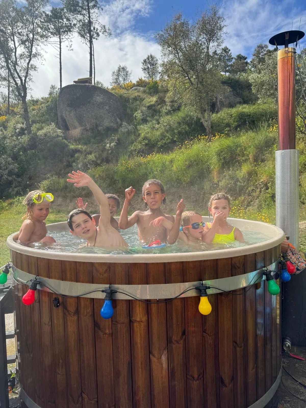 The family XL hottub is amazing for kids playing or to book for a relaxing romantic quality time under the thousands of stars in the Serra de Estrela sky. From around 20/7 till 24/8 it’s the shooting star season! Make sure to book your spot in time :)